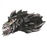 Draco (Dragon) Black Moving Mouth Mask The most extreme moving mouth Dragon mask ever created. Black Version – Over 22 inches long yet fits secure to the user via light weight foam inserts and 1 1/4″ inch wide elastic harness. Great all around mask. Hand poured, painted and assembled in the US