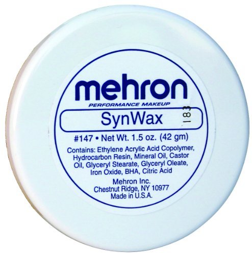 This 1.5 oz versatile synthetic wax was developed by professional brand Mehron as a substitute for traditional modeling wax.  SynWax is a more pliable wax than traditional modeling wax and is easier to accomplish finer details.  The two waxes can be used interchangeably for smoothing the edges of prosthetic pieces, blocking out eyebrows, or adding features to performance characters.