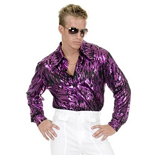 The Men's Plus Size Disco Purple Flame Shirt is a unique garment that looks like it's made of highly polish silk. The shirt fits in line with the type of style that made the '70s one of the most unique decades for fashion. Pair this shirt with other '70s items from our accessories page.