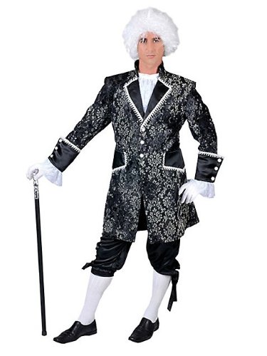 Are you looking for a carnival costume this Halloween? The Mens Venetian Carnival Signore Costume is a beautifully designed costume that features a short black satin knickers and a long, brocade style coat fancy cuffs. Also included is an ascot. Try accessorizing this costume with Venetian Mask, a powdered wig, and a cane and this costume will be complete! You'll be ready to party old Louisiana French style with the Mens venetian Carnival Signore Costume!