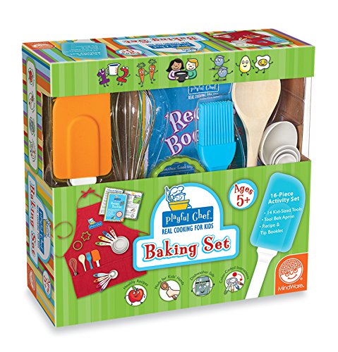 • Includes adjustable red apron, measuring cups and spoons, cookie cutters, silicone, stainless steel and, wooden utensils, and recipe & tip booklet