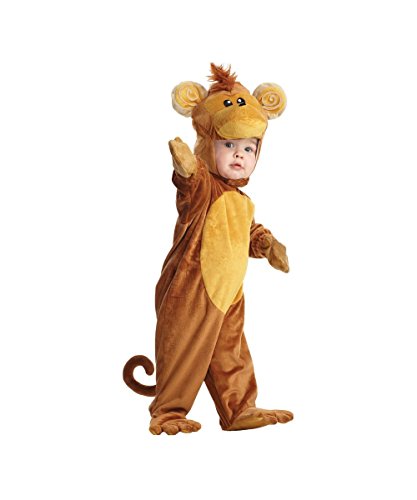 Monkey Toddler Costume for Babies Includes: Jumpsuit with attached feet, hood and mitts Available Sizes: Toddler Medium, Toddler large
