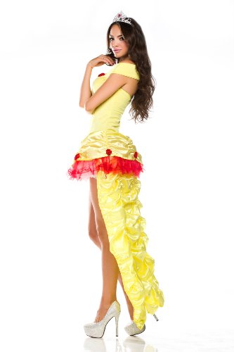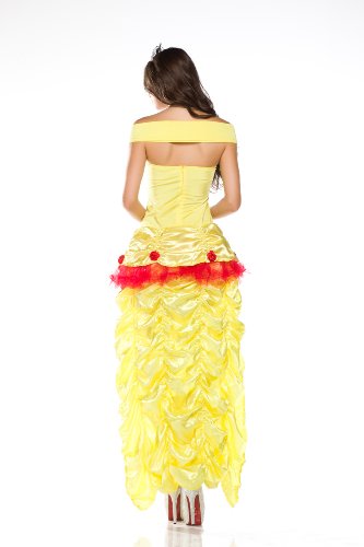 • Includes yellow corset and skirt with roses