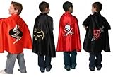 Contact us with any order deadlines upon ordering by email. Note that we must be advised in advance of delivery deadlines. To upgrade to expedited shipping, returns or any other customer service needs, please email us as well. We will respond to your email promptly. Please include a valid daytime phone number so we can contact you if necessary. Set of 4 capes! Red Superhero cape, Black Bat cape, Pirate Carribean cape, Black Knight sword & shield cape Red superhero cape. Polyester satin. Velcro neck closure. Measures approximately 24″ long. Made in China. Age 3+ Pirate Cape Ahoy mates! Sail the open seas in our new pirate cape. Red satin cape is embroidered with a skull and crossbone. Velcro neck closure for easy and adjustable fit. Cape measures approximately 24 inches long. 100% polyester. Hand wash, lay flat to dry. Imported. Color : Red Bat Cape Our black satin bat cape is perfect for every adventure. Quality embroidered bat emblem. Velcro neck closure for easy and adjustable fit. Cape measures approximately 24 inches long. 100% polyester. Hand wash, lay flat to dry. Imported. Knight Sword/Shield Cape This cape is essential for every dress up trunk. Boys love to imagine slaying a dragon. Satin cape is embellished with an embroidered sword and shield. Fun for a party too. Don't forget the coordinating knight favor bags! Cape measures approximately 24″ long. Hand wash, lay flat to dry. Imported