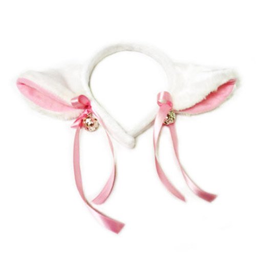 These cosplay ears are White and so soft. The insides are pink. Each ear has a bell and pink ribbon accent!