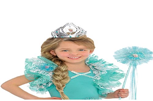 Show off your snow-capped shoulders with our Elsa Shrug! Featuring blue tulle and a glittery snowflake pattern accented with an Elsa snowflake brooch, this voluminous shrug makes a great accessory for your little princess's Frozen costume. With ribbon ties that secure comfortably behind the back, this pretty shrug will stay put during icy adventures! One size Elsa Shrug fits most children and measures 39in long.
