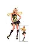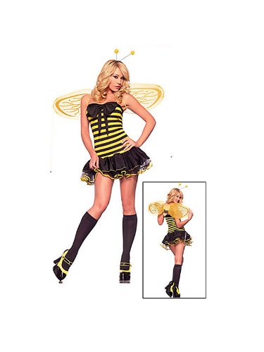This naughty little bumble bee costume includes strapless chemise made of stretch lycra with built in petticoat wings and headpiece. Knee highs sold separately.