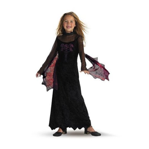 Magical powers beyond your imagination This beautiful sorceress named Mortalia uses the secrets of magic to get what she wants Once you put on this costume you will feel the power and creativity of the beautiful Mortalia. She wears a long black dress with a pretty flower imprint on the front. Her sleeves have beautifully colored details and will accent the beauty of any young girl. So come on and lets cast a spell Includes: Dress with attached sleeve detail.Complete Costume Ready to Wear Comfortable, Breathable Material Fits Girls Size Medium (78)