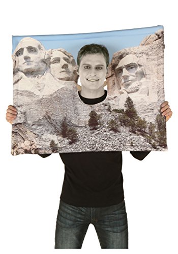 If you've ever thought it might be fun to replace Theodore Roosevelt's face on Mount Rushmore with your own, here's your chance! This Mount Rushmore Costume is a foam backdrop with a PVC tube frame and straps to hold it on your shoulders. There's a hole where Roosevelt's face would be, and that's where you insert your own face.