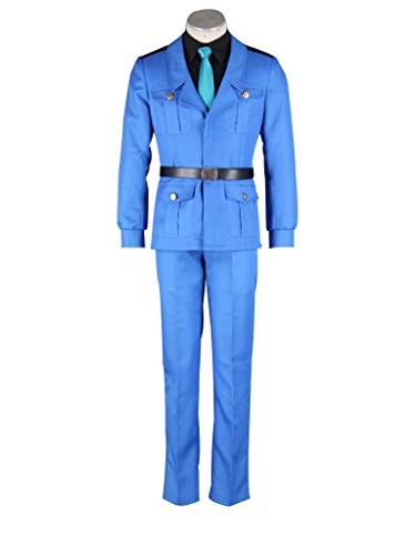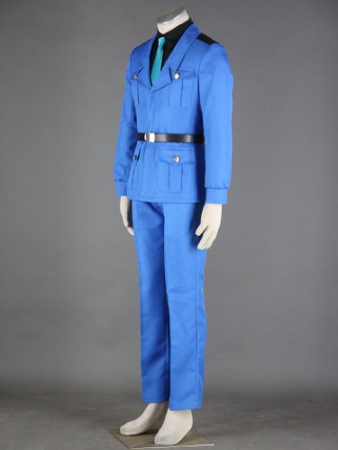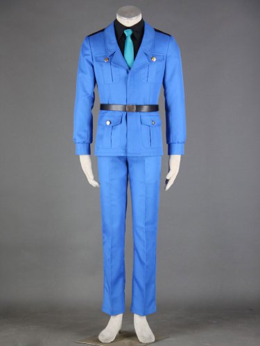 Including:Military uniform,Shirt,Trousers,Tie,3.3CM black leather belt.Material:Cotton,Uniform cloth,Lining.