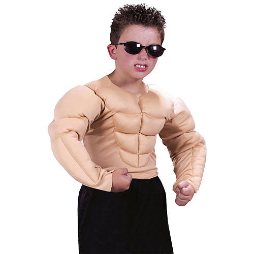 - Fabric shirt includes distinctive muscle design. Velcro enclosure.