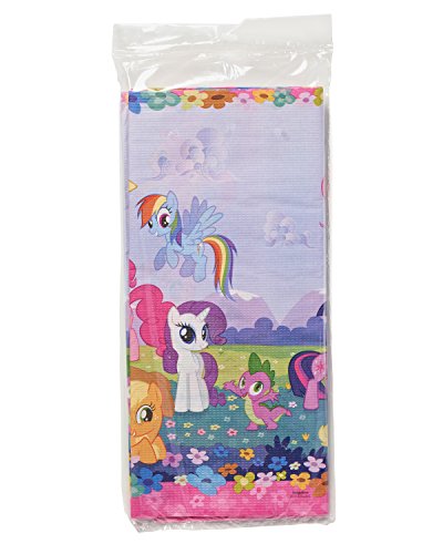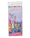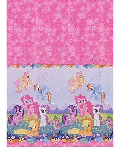 Create a magical gathering space for My Little Pony fans! Our colorful My Little Pony table cover features Pinkie Pie, Twilight Sparkle, Rainbow Dash and other pretty ponies playing in a meadow of flowers! Let this convenient plastic table cover protect your table while creating a perfectly coordinated party look. Measures 54 in. x 96 in., so it fits most tables and provides a practical decoration for any birthday party! The plastic table cover is also disposable, and you'll love the quick and easy cleanup! Suitable for indoor and outdoor use, it makes the perfect addition to your My Little Pony-themed birthday party!