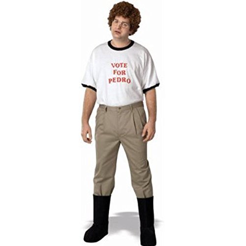Features a “Vote for Pedro T-Shirt,” Costume Accessory Kit with Wig and Glasses and Moon Boots. The faux boots slip right over any shoe size.