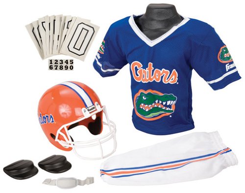 15500F04P1Z NCAA Team: Florida Gators, Size: Small Features: -Uniform set. -NCAA team's logo printed on the products. Age: -Child. Gender: -Male. Product Type: -Costume. Character: -Football Player.