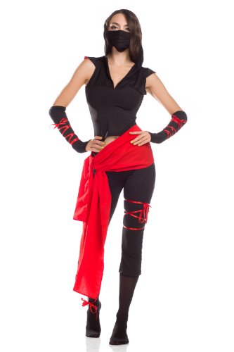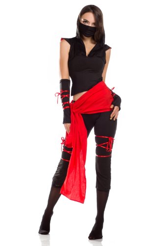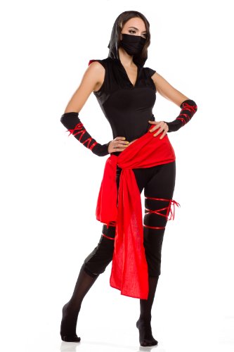 - Fight quick and fast when in the Fierce Black Ninja costume that includes a sexy black romper with a contrasting silver lace plunging neckline,