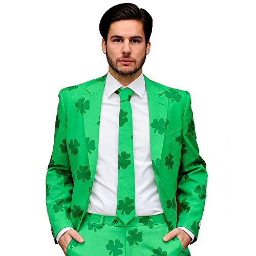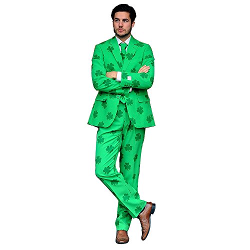 • Stylish, high-quality green suit with shamrock print. Perfect as a Halloween costume and other year-round occasions such as a bachelor party, a wedding, a festival, a sporting event or any type of party where you want to stand out. Worn to be wild