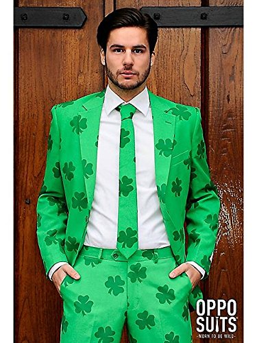 - Stylish, high-quality green suit with shamrock print. Perfect as a Halloween costume and other year-round occasions such as a bachelor party, a wedding, a festival, a sporting event or any type of party where you want to stand out. Worn to be wild