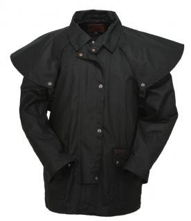 Short oilskin duster is traditionally styled with front and back capes. Oversized double entry patch pockets and adjustable snap cuffs. Inside drawstring waist. Made of 100% cotton oilskin. Imported. Sizes: S(36-38), M(40-42), L(44-46), XL(48), 2XL(50).