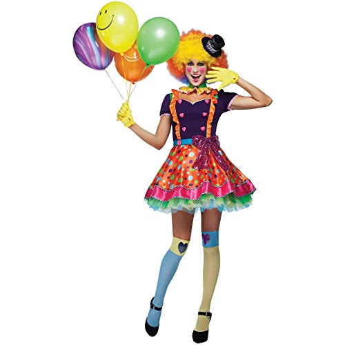 - Our womens clown costume comes in adult sizes Small, Medium, Large.
