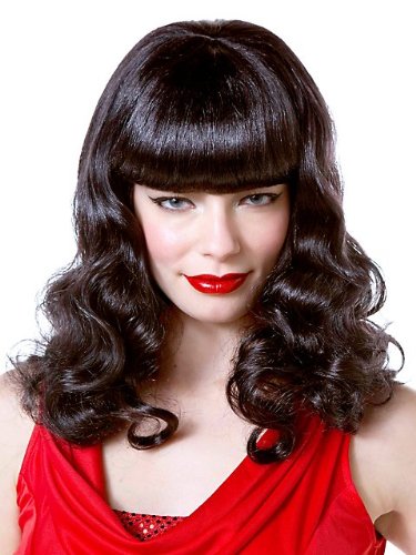 Touch up your go-go dancer costume, or add a little spice to your witch look, whatever tempting outfit you are wearing for Halloween, this Party Girl Black Wig for adults will fit in perfectly. Go wild this year, in the curly black wig with straight bangs.