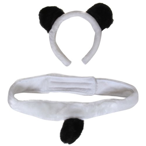 Soft plush white and black panda headband ears and tail set. Ideal for school plays, dress up and Halloween costumes. Fun for a zoo animal or safari theme birthday party favor. One size headband is recommended for children. Soft touch waist tail has an adjustable waist and fits up to 24″ around. 100% polyester. Imported.