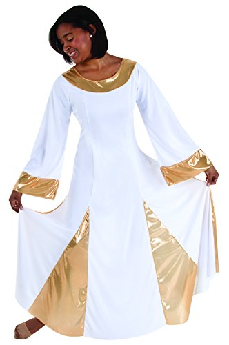 Body Wrappers 592 / 592XX Womens Praise Dance Metallic Asymmetrical Bell Seeve Dress