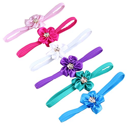 QS 6 Pieces Baby's Headbands Girl's Headband Head Wear Crystal Flower (6 Pack)