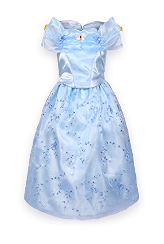 Cinderella is one of the most popular Disney movies characters. She lived a miserable life after her father's death. Going through a lot, she finally got an happy ending. It's a dream for every girl to become the mysterious and beautiful Cinderella to meet her prince. Now it's time to let your little girl' dream come true and give her a chance to enter the Fairy Tale world. With its shining sequin and delicate butterfly decoration, this dress costume will no doubt be your girls' new favorite and all eyes would be on her when she in this dress. Mesh, satin and polyester. Dry clean only. Imported.