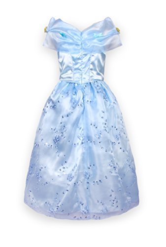 Cinderella is one of the most popular Disney movies characters. She lived a miserable life after her father's death. Going through a lot, she finally got an happy ending. It's a dream for every girl to become the mysterious and beautiful Cinderella to meet her prince. Now it's time to let your little girl' dream come true and give her a chance to enter the Fairy Tale world. With its shining sequin and delicate butterfly decoration, this dress costume will no doubt be your girls' new favorite and all eyes would be on her when she in this dress. Mesh, satin and polyester. Dry clean only. Imported.