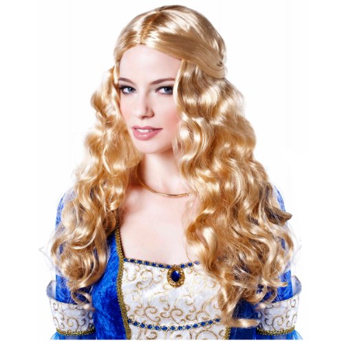 Be the fair maiden every knight wants to rescue, and dress up as a princess from the Renaissance times, this Halloween. If you have the costume, finish it off with the hairdo, and buy this Renaissance Goddess Blonde Adult's Wig. The wig is straight up top and then flows into luscious blonde locks.