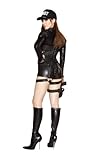 2 piece sexy swat includes long sleeve romper and fully boned waist cincher with studded strap detail, back lace up detail, and attached garters color: black