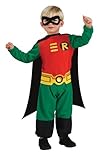 The Teen Tightens have turned the sidekick into a leader! This Robin costume includes a full green jumpsuit with a red bodice and a yellow utility belt! Also included is a balck mask that goes over his face, with lots of room for his eyes and a fun black cape. This costume is going to be used many times after Halloween, too!