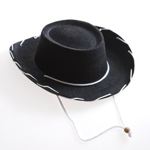 Dress For the Wild Wild West. Top off your child's cowboy or cowgirl western costume with this adorable Children's Black Felt Cowboy Hat. Your child will steal the show at your upcoming western party in this way out west black cowboy hat. Lasso this cowboy hat for a western Halloween costume your child won't forget! One size fits most children. Approximately 20 circumference around inside of hat. White rope trim with adjustable wooden bead. Made of thick, stiff felt. Sale items are non returnable. Our western costumes and cowboy hats are perfect for your upcoming western party or Halloween event. Don't miss out on wild west fun! Stock up on the western wear you and your family needs to create a hee haw good time! Part of Costumes > Hats & Wigs > Cowboy & Western