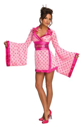 - Pink Kimono inspired mini dress with dark pink trim and bunny heads, obi, and headpiece
