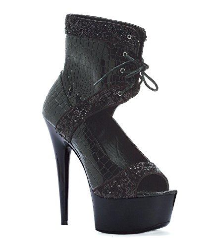 6″ Multi Buckle Quilted Stiletto w/2″ Platform black faux crocadile with glitter trim. Color: Black. Sizes: 5-12.