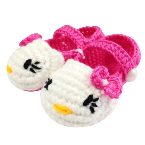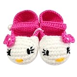These booties are super cute! Made from yarn, these booties are hand woven and are crocheted into a kitty design that will make your little girl smile and dance. The yarn is soft and comfortable, and the band across the ankle will ensure the booties stay snug on your little one's feet. Also makes a great baby gift!