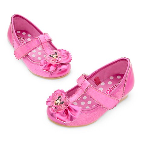 • Goody two shoes She'll be in the pink skipping about in these Minnie Mouse Shoes for Girls. Glittering pink uppers are accented with metallic pink faux leather and topped with a Minnie heart cameo for shoes with character and style.