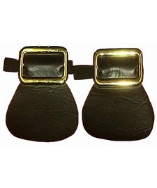 Pair of black vinyl flaps with 3 and 1/2 inch wide silver color or gold color buckles. Dress up your shoes for a total colonial-style look. Colors sold separately.
