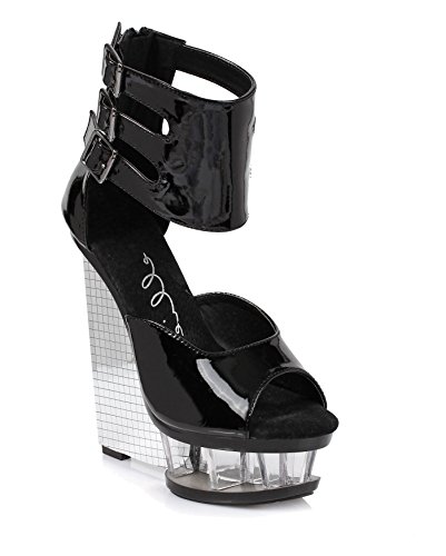 610-Mira 6″ Wedge with Ankle Strap. Color: Black Pink Silver. Sizes: 5-12.