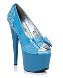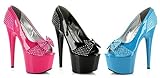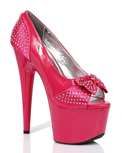 E-709-Vixi 7″ Open Toe Pump w/Rhinestone Embellishment. Color: Fuchsia Black Blue. Sizes: 6-10.