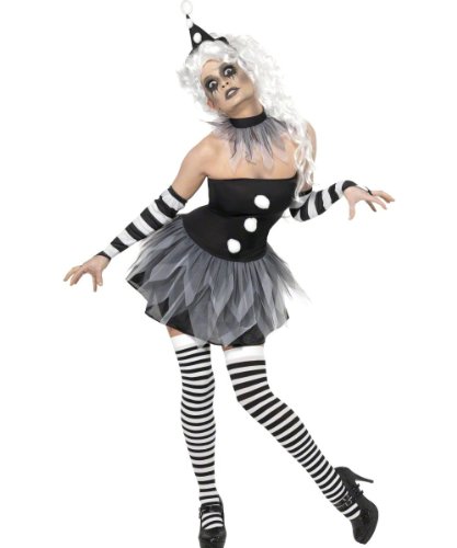 • Sinister Pierrot Costume, With Dress, Neckpiece, Hat and Arm Cuffs