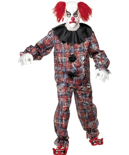 Includes a long sleeved printed top with a black collar piece, matching elasticated trousers, clown mask with hair, white gloves and a pair of shoes. Available sizes : Medium: Chest 38″-40″, Waist 32″-34″ Large: Chest 42″-44″, Waist 36″-38″