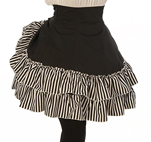 - 100% Cotton body with thick poly chiffon striped ruffles. 2 layer skirt, with ruffles on both layers. High waisted skirt to fit easily underneath your corset