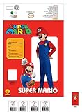 • Costume features jumpsuit with blue overalls, big yellow button and attached red long sleeve shirt