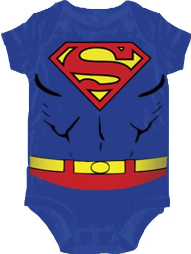 Even an infant has the potential to grow up to be a superhero. Inspire them young with this officially licensed Superman costume infant snapsuit with the classic logo on the chest and fake muscles.