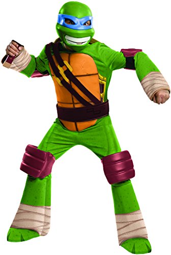 This Deluxe Child Leonardo Costume lets your child become the fearless leader of the Teenage Mutant Ninja Turtles! If he eats, sleeps and breathes ninjutsu, this is his costume. Add a pair of katana swords so he's well-equipped to give the bad guys a bad day!