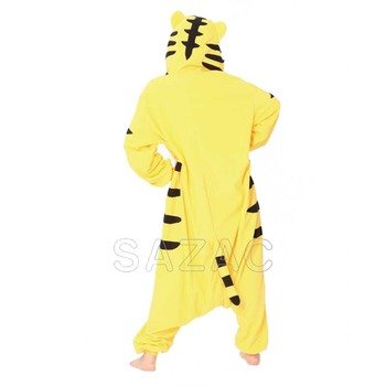 Rawr! Unleash the wild beast inside when you don this Tiger Kigurumi. The bright yellow body, plush tail and fierce black stripes let those around you know you've got the makings of a champion. You've always known that you're kind of a big deal. Now they will, too. What's more, you'll take your cat naps to the next level when you wear this kigurumi as pajamas.