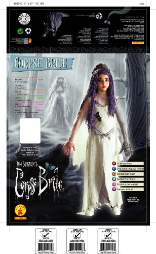 - Tim Burton's Corpse Bride Costume, Large^Long white dress with skeleton sleeve^Includes headpiece^Hand wash in cold water and dry flat^Large fits child size 12 to 14^Officially licensed costume