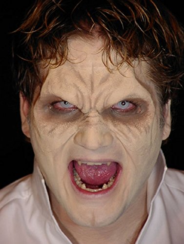Typische Vampirstirn und deutlich betonte Jochbeine: Eben der moderne Vampir von heute. Genau so, wie man ihn aus Film und Fernsehen kennt. Diese Vampirmaske – Latexapplikation ist leicht anzukleben und angenehm zu tragen. Keine Einschränkungen der Sicht oder beim Essen und (Blut)trinken. Besonders in Kombination mit Kontaktlinsen und unseren Vampirzähnen lassen sich professionelle Verwandlungsergebnisse erreichen! Und wer sich nicht die Mühe des Einschminkens machen will, bekommt die Maske auch in einer vorgeschminkten Version- so, wie auf dem Foto zu sehen. Packungsinhalt: