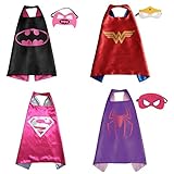 Superhero Costumes (4 Satin Capes and 4 Felt Masks) and Superhero Party Supplies for Kids